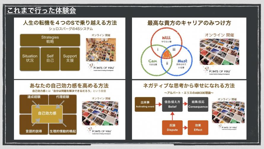 - 100回以上のPoints of youを使った研修や講座を開催しているノウハウが聞けます。